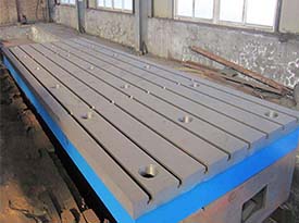 鑄鐵平板又稱鑄鐵平臺(tái),外觀基本上是箱體式,工作面有長方形、正方形、圓形等,材料為HT200-300,QT400-600,采用刮研工藝,工作面上可加工V形、T形、U形槽、燕尾槽、圓孔、長孔等,是用于工件、設(shè)備檢測、劃線、裝配、焊接、組裝、鉚焊的平面基準(zhǔn)量具。